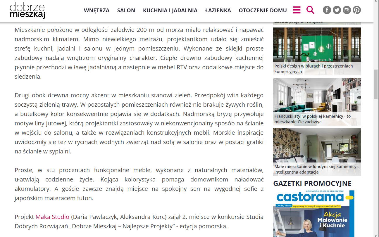 publikacja projektu w magzaynie Dobrze Mieszkaj.