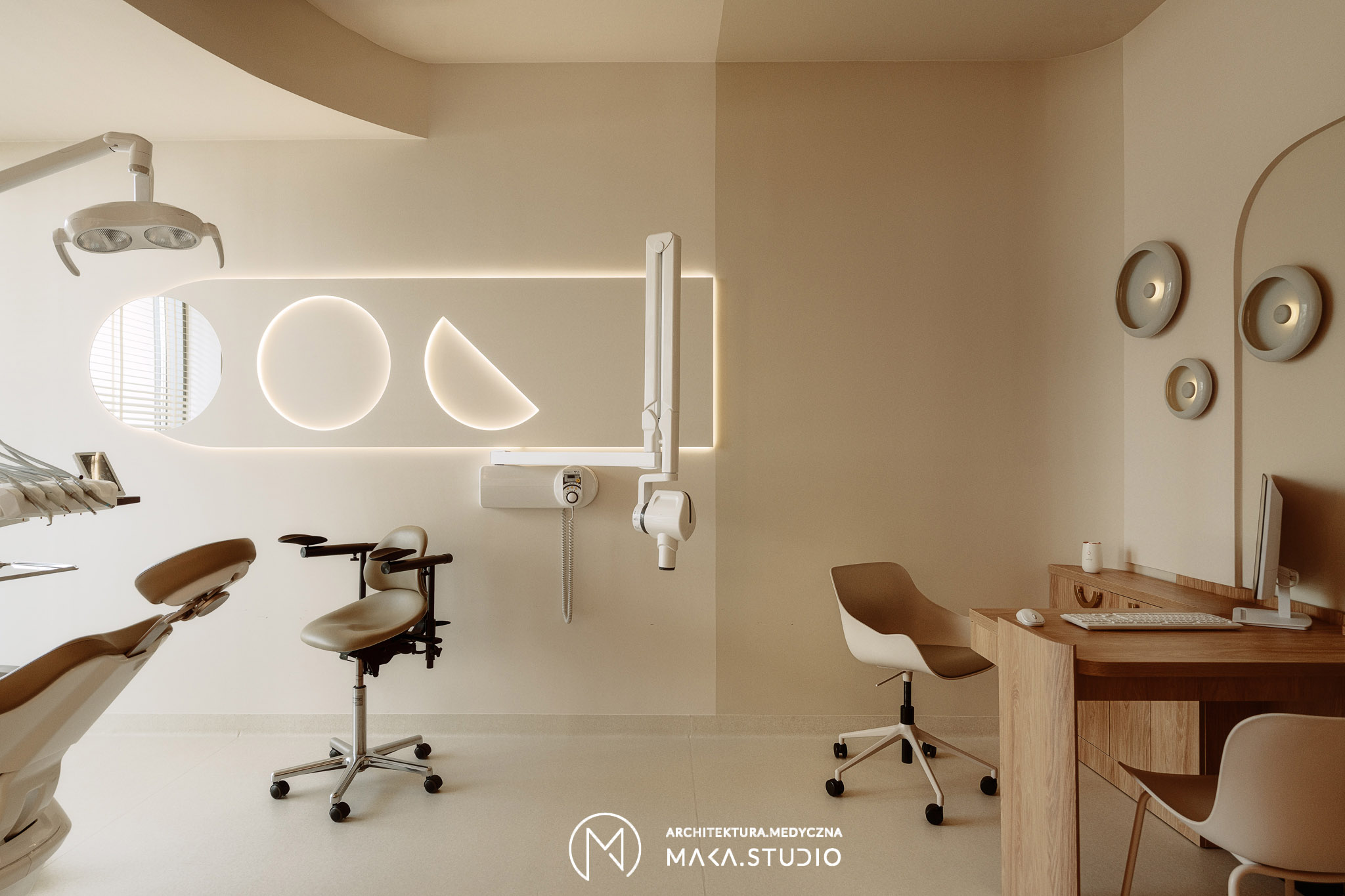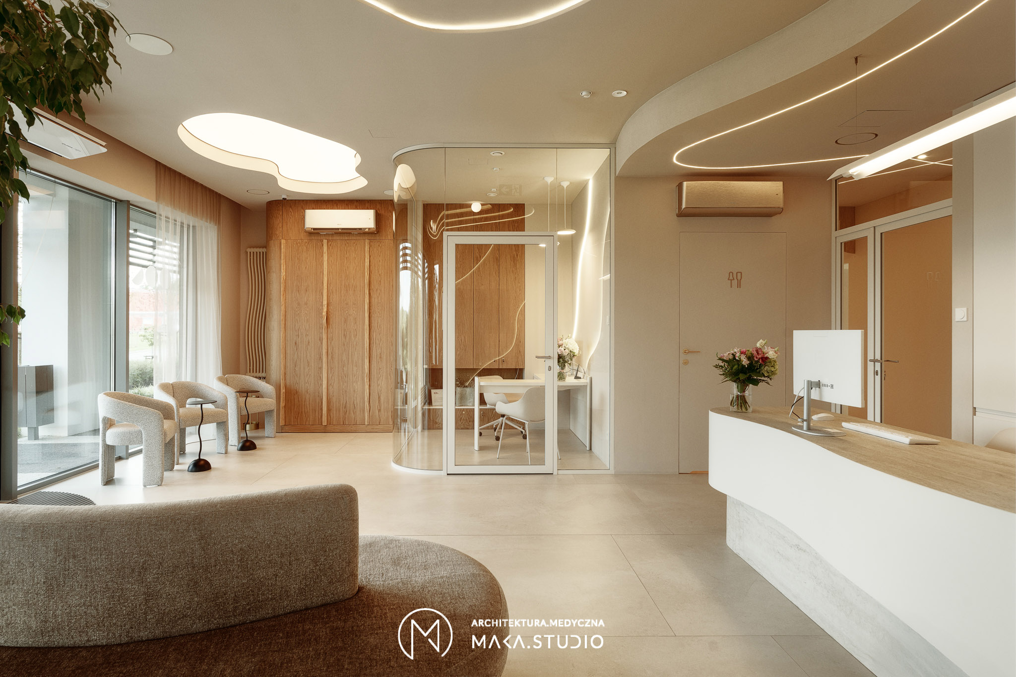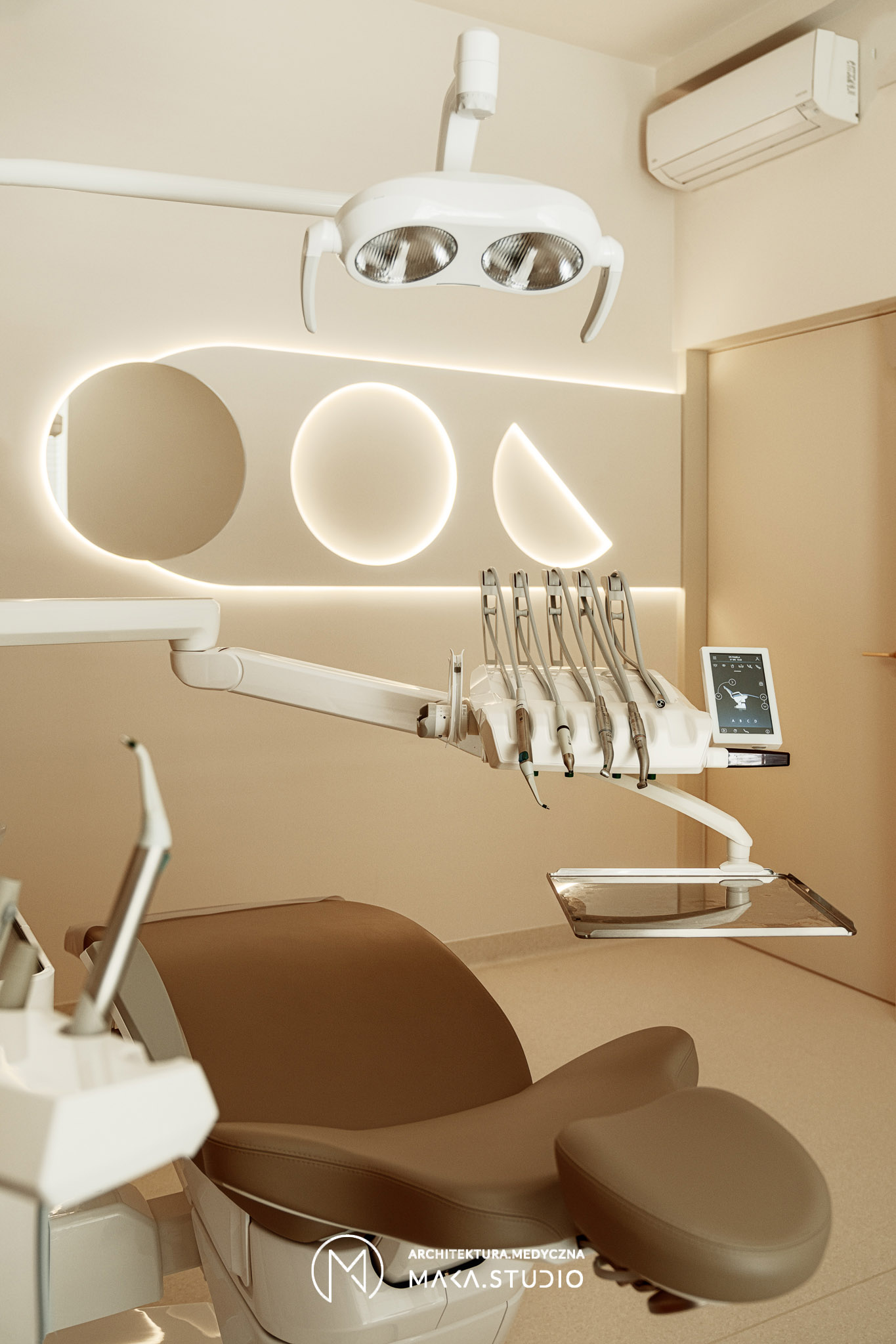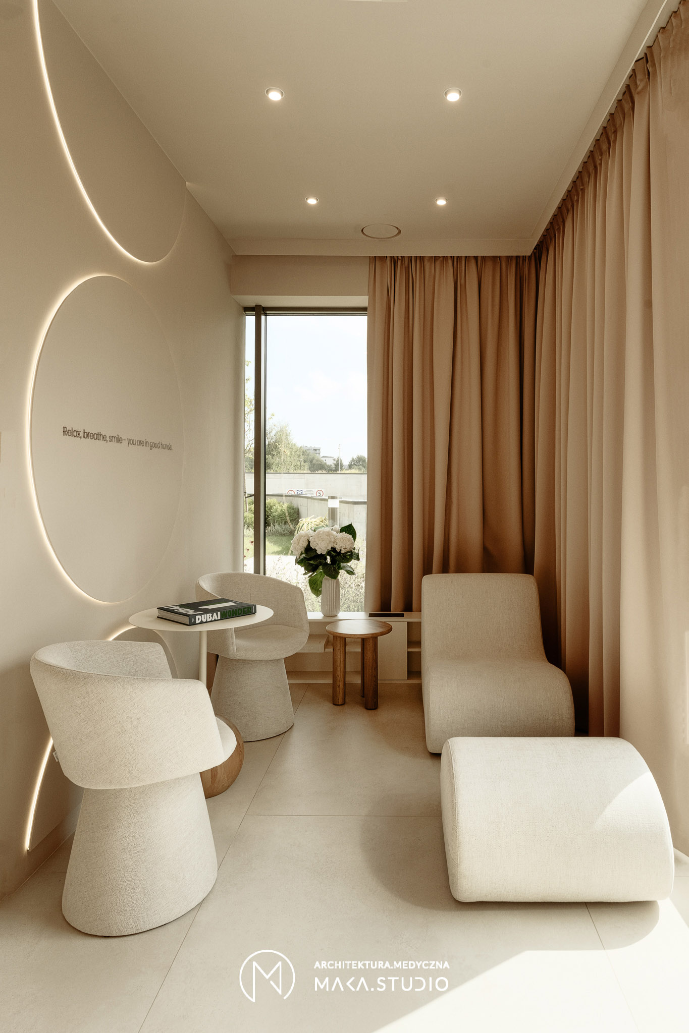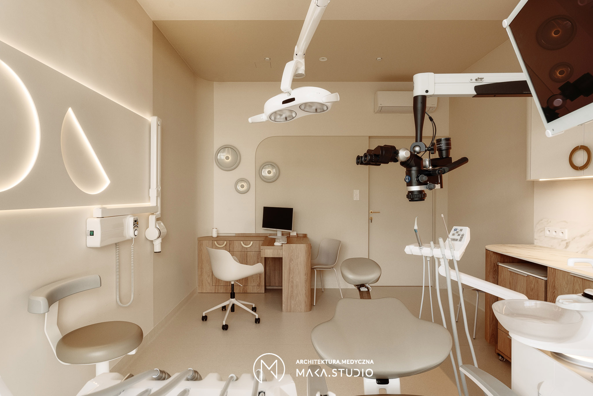 Projekt wnętrza kliniki stomatologicznej stanowi radykalne odejście od stereotypowego, chłodnego i sterylnego wizerunku placówek medycznych. Główną osią koncepcyjną projektu stała się natura oraz unikalny, swobodny klimat meksykańskiego Tulum, co było bezpośrednim życzeniem Inwestorów. Celem było stworzenie przestrzeni, która zamiast budować dystans i napięcie, otula pacjenta spokojem, kojarząc się bardziej z luksusowym strefą wellness niż gabinetem zabiegowym.