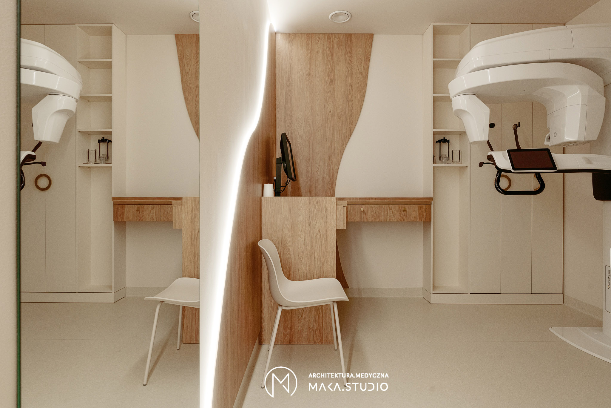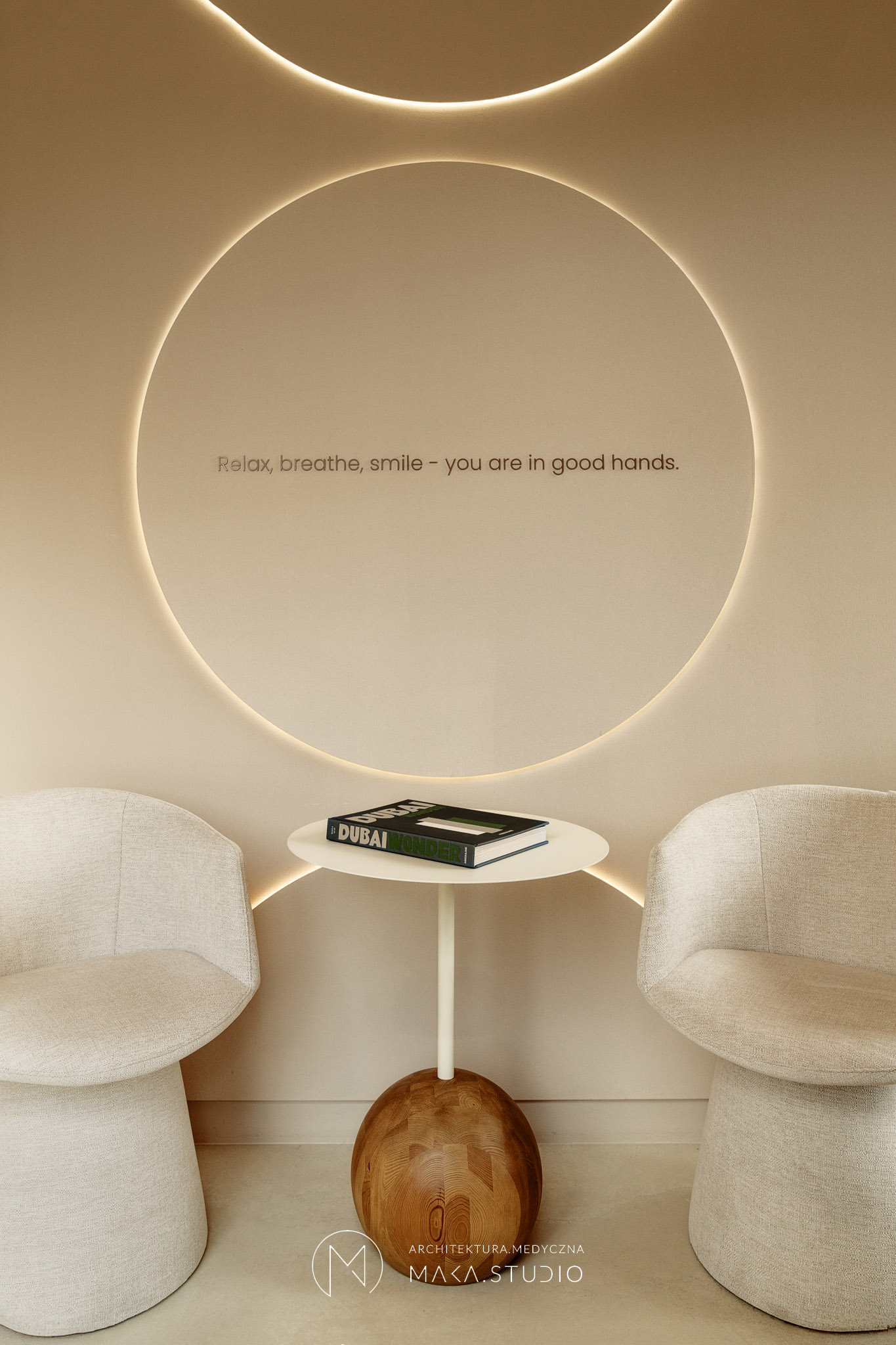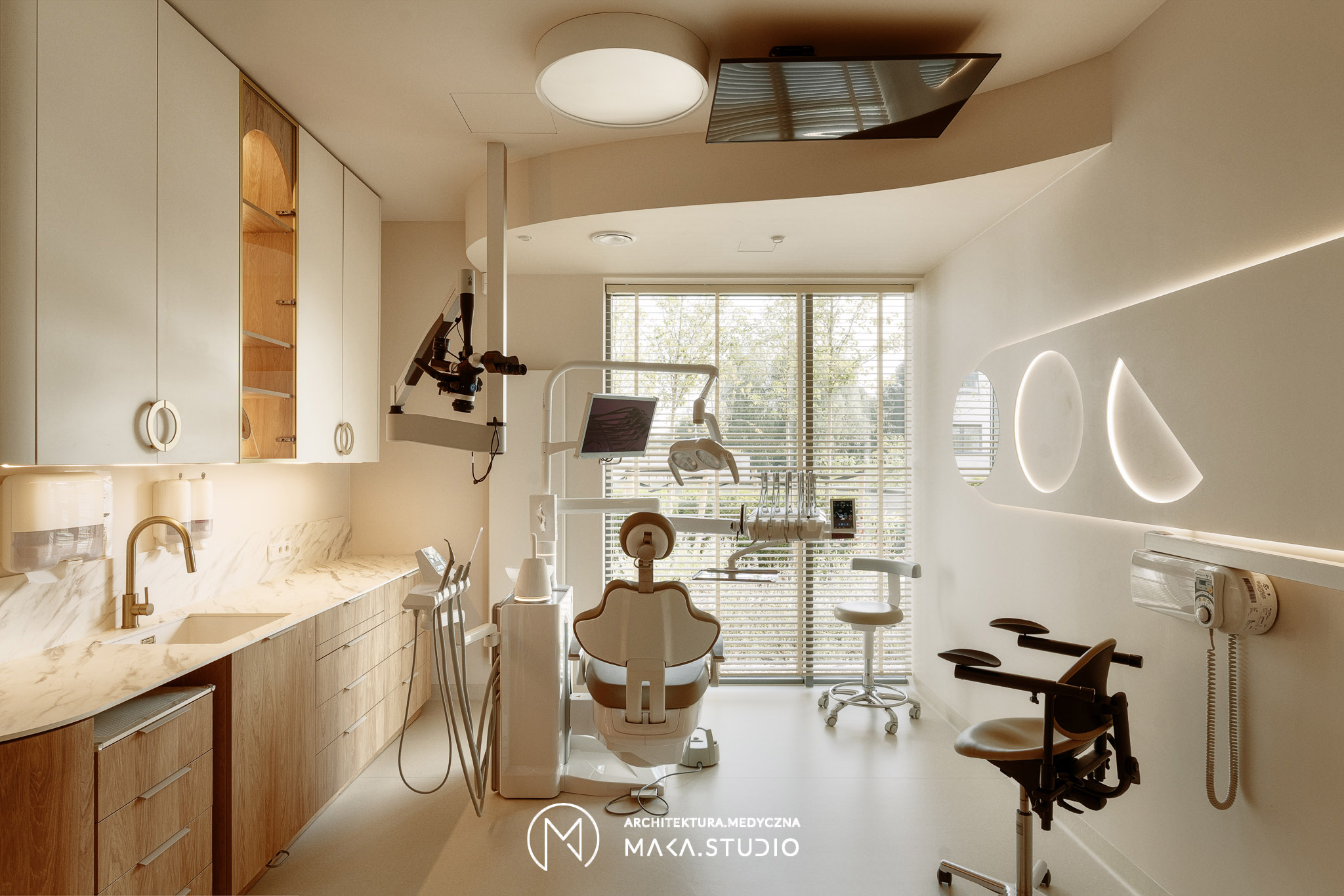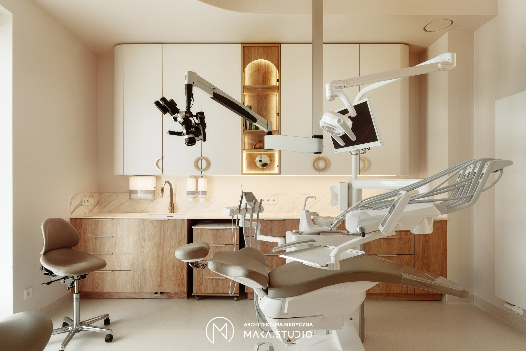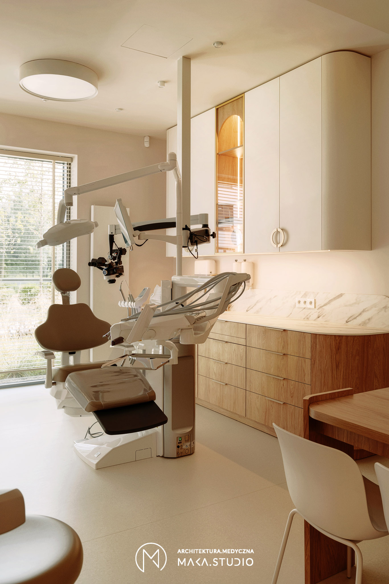 Projekt wnętrza kliniki stomatologicznej stanowi radykalne odejście od stereotypowego, chłodnego i sterylnego wizerunku placówek medycznych. Główną osią koncepcyjną projektu stała się natura oraz unikalny, swobodny klimat meksykańskiego Tulum, co było bezpośrednim życzeniem Inwestorów. Celem było stworzenie przestrzeni, która zamiast budować dystans i napięcie, otula pacjenta spokojem, kojarząc się bardziej z luksusowym strefą wellness niż gabinetem zabiegowym.