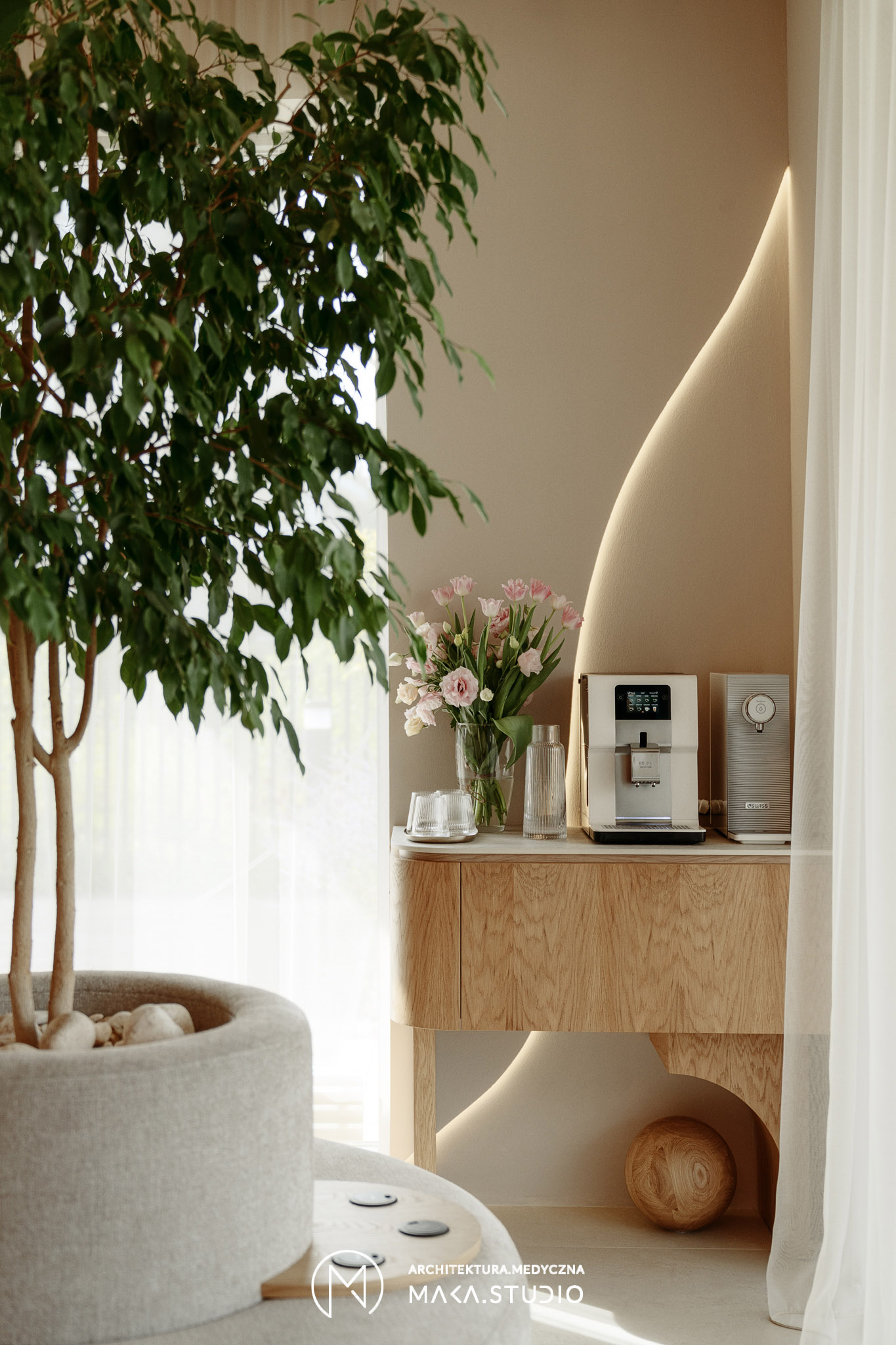 Przestrzeń ta udowadnia, że medycyna i design mogą iść w parze z relaksem. Dzięki inspiracjom czerpanym z natury i estetyki boho-luxury, klinika staje się miejscem wyciszenia, w którym pacjent czuje się zaopiekowany jeszcze przed wejściem do gabinetu.